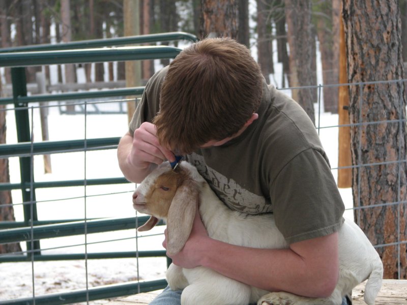Spenser w/baby Boer goat