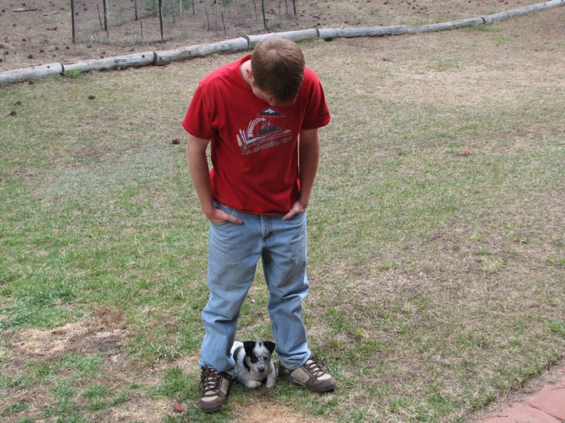 Nikki meeting Miya, our newest livestock guardian dog (1 Apr 07)